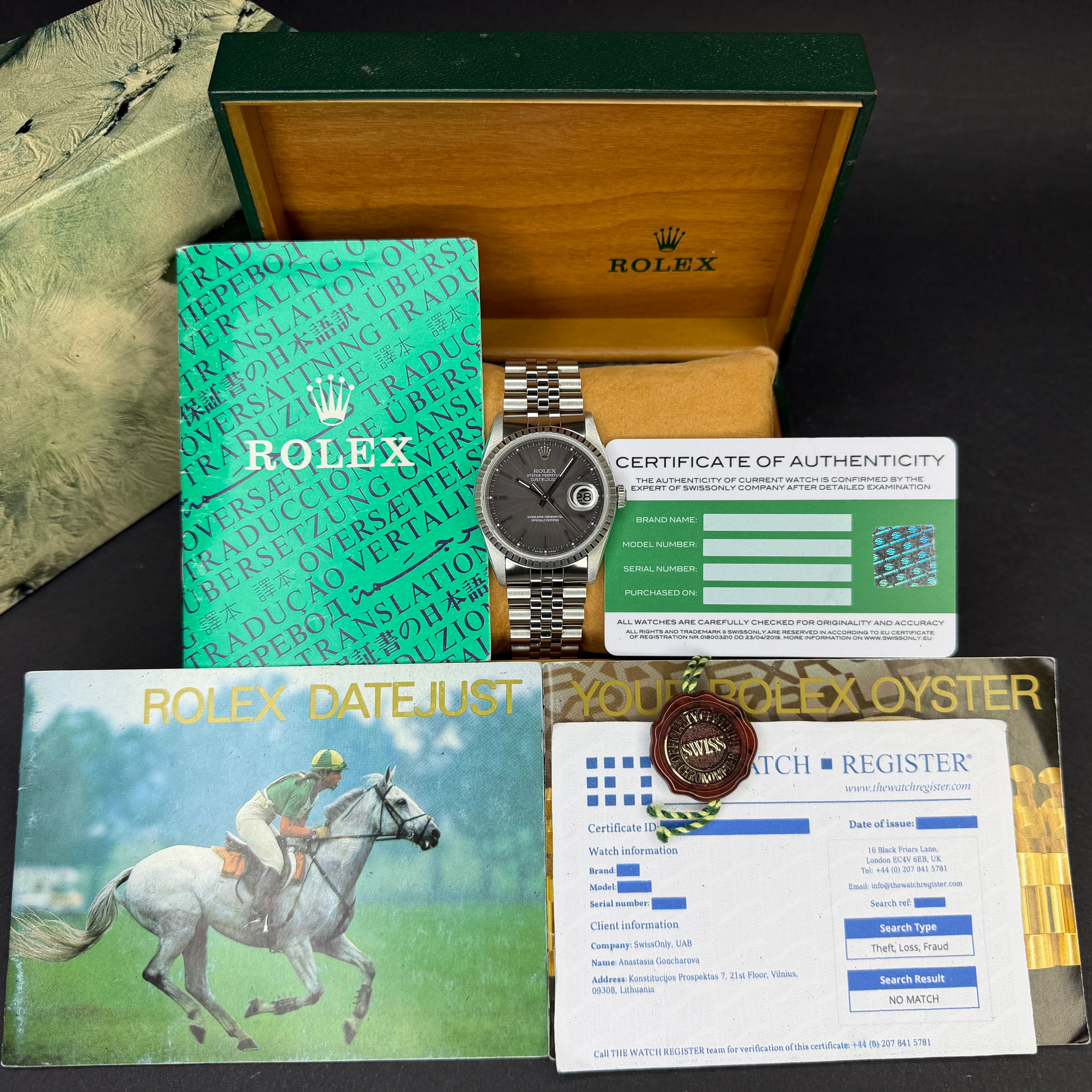 Rolex Datejust, 16220, 36mm, 1988, Steel, Grey dial, Box, 1y warranty