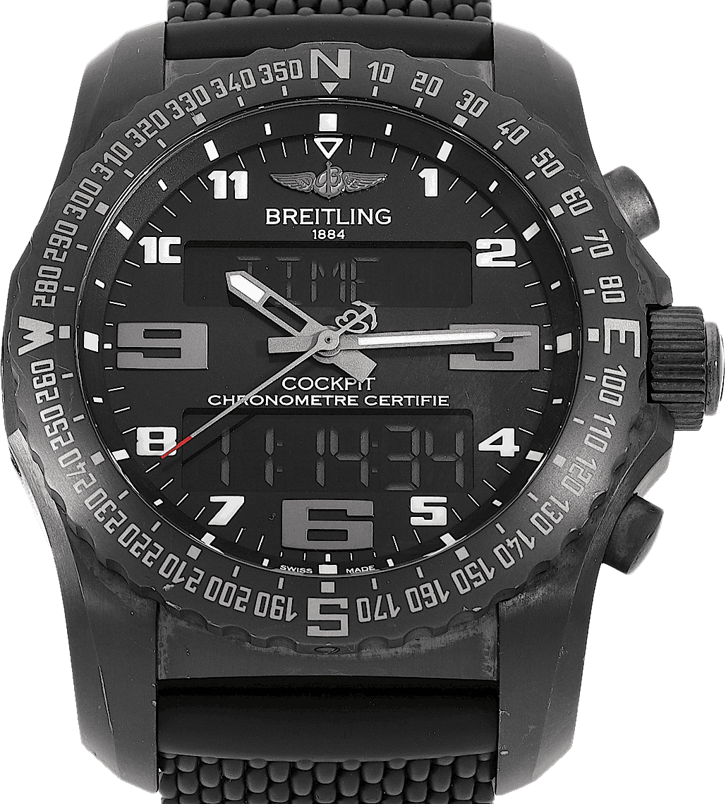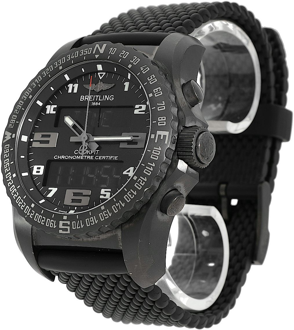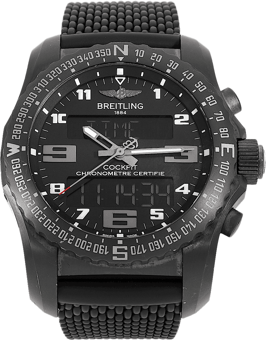 Breitling Cockpit, Reference: VB501022.BD41.176V, Gender: Male, Size: 46mm, Dial color: Black, Strap material: Rubber, Movement: Quartz, Condition: Pre-owned watch in original condition. Has been inspected, regulated and authenticated by certified CHRONEXT watchmakers., Documents: Original papers, Certificate