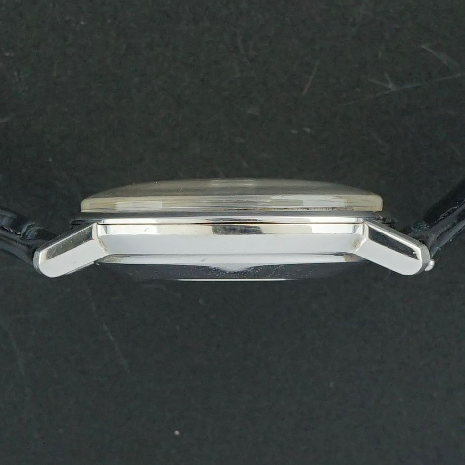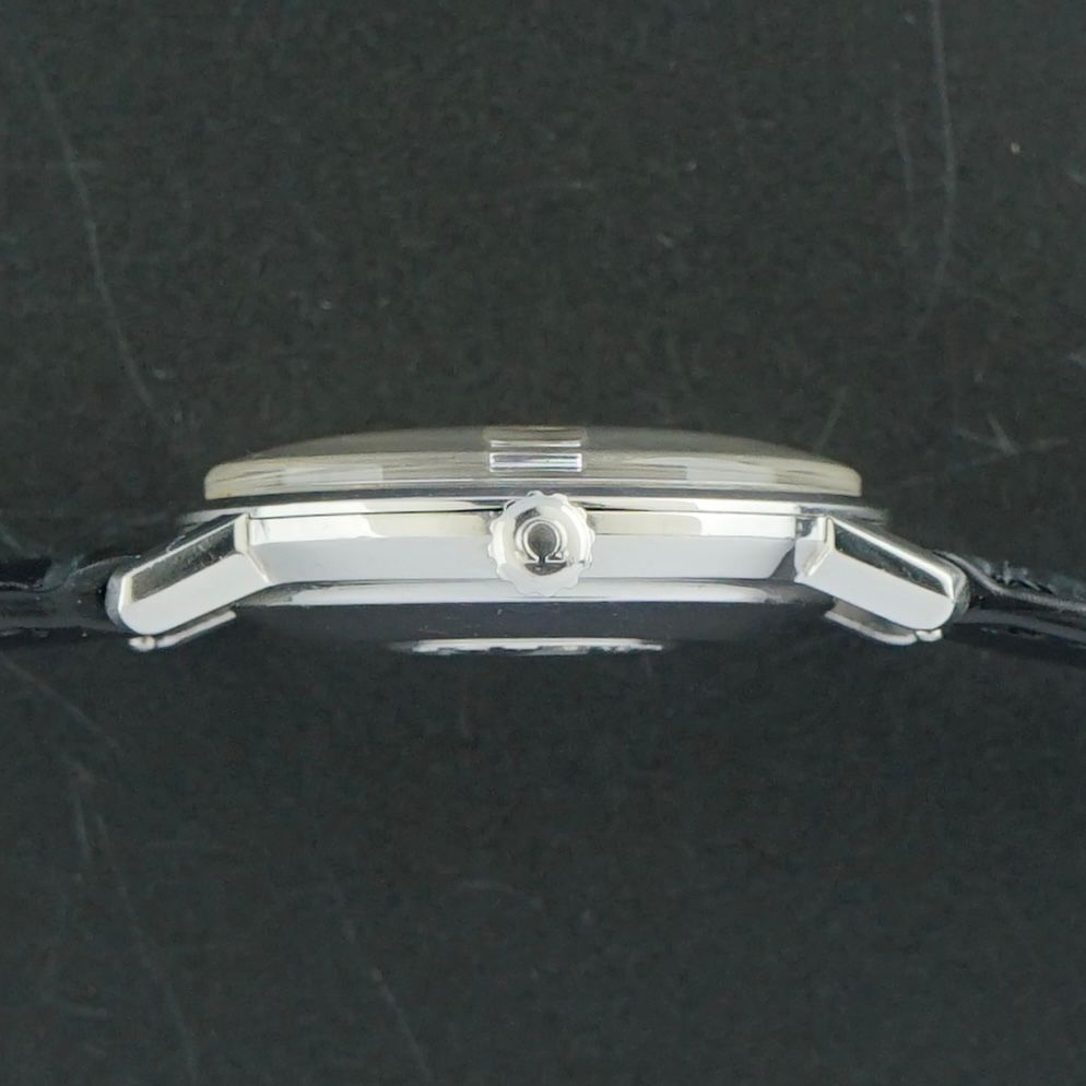 A vintage Omega Seamaster De Ville produced in 1963, featuring a beautiful white sunburst dial with a fine, evenly speckled patina across the surface, giving it a rich and highly desirable vintage character, complemented by a classic crosshair motif and elegant silver accents. Inside sits the caliber 562 automatic movement, which we had serviced in April 2026 and now runs and functions excellently. This watch has been paired with a top grain black leather strap with a crocodile motif, the only non-original component on this otherwise entirely original piece. It will make for an incredible addition to any collection. Year of production: 1963 Serial number: 20.038.360 Model / Reference number: 14910 SC-62 Case dimensions. - Width excluding crown: 34,5mm - Width including crown: 37mm - Lug to lug: 40,5mm - Thickness: 10,7mm Lugs width: 18mm Strap: A top-grain black leather strap with a crocodile motif. (Fits a 12 to 20cm wrist) Total head-only weight: 28,4g Country of origin: Switzerland Movement: Cal. 562 Automatic Service information: Movement serviced in April 2026. Runs and functions excellently. (~+4s/d, ~306amp, ~0.1ms b/e) Internal code: BTW 1589