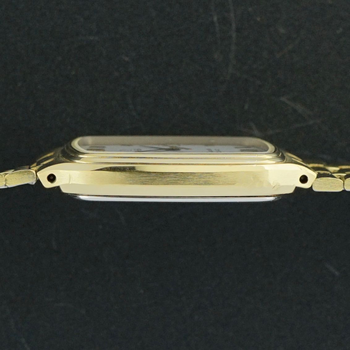 A vintage Omega Seamaster quartz produced in 1982, featuring a beautiful white dial with Roman numerals at the 12 and 6 o’clock positions and a date window at 3 o’clock, creating a classic and elegant layout. The gold-plated case retains its original polish very well, complemented by the integrated gold-plated bracelet which has been ultrasonically cleaned and remains in beautiful condition. Inside sits the caliber 1420 quartz movement, overhauled in April 2026, now running and functioning excellently. Overall condition is beautiful, and the watch currently fits a wrist size between 14 and 18 centimeters.