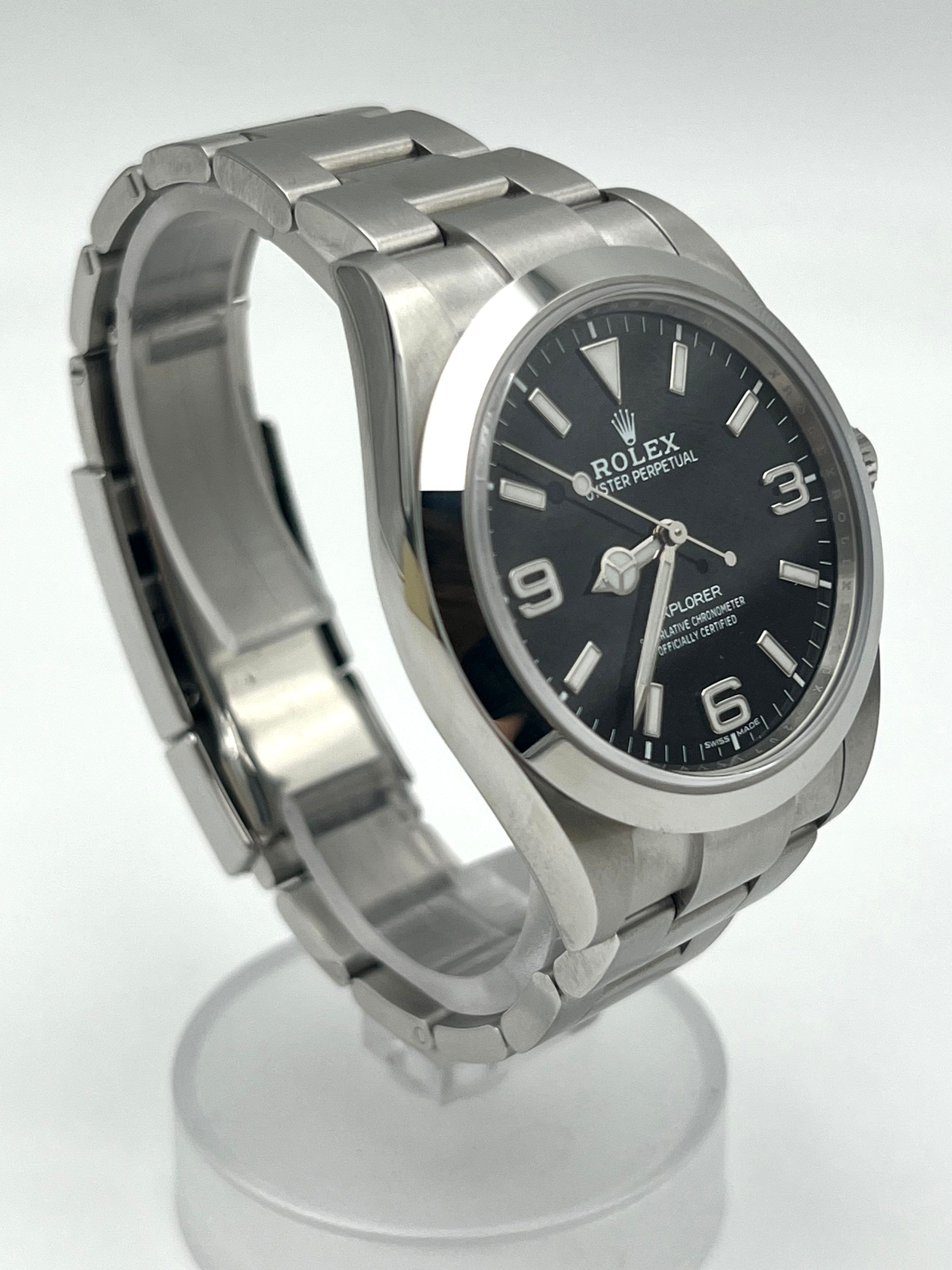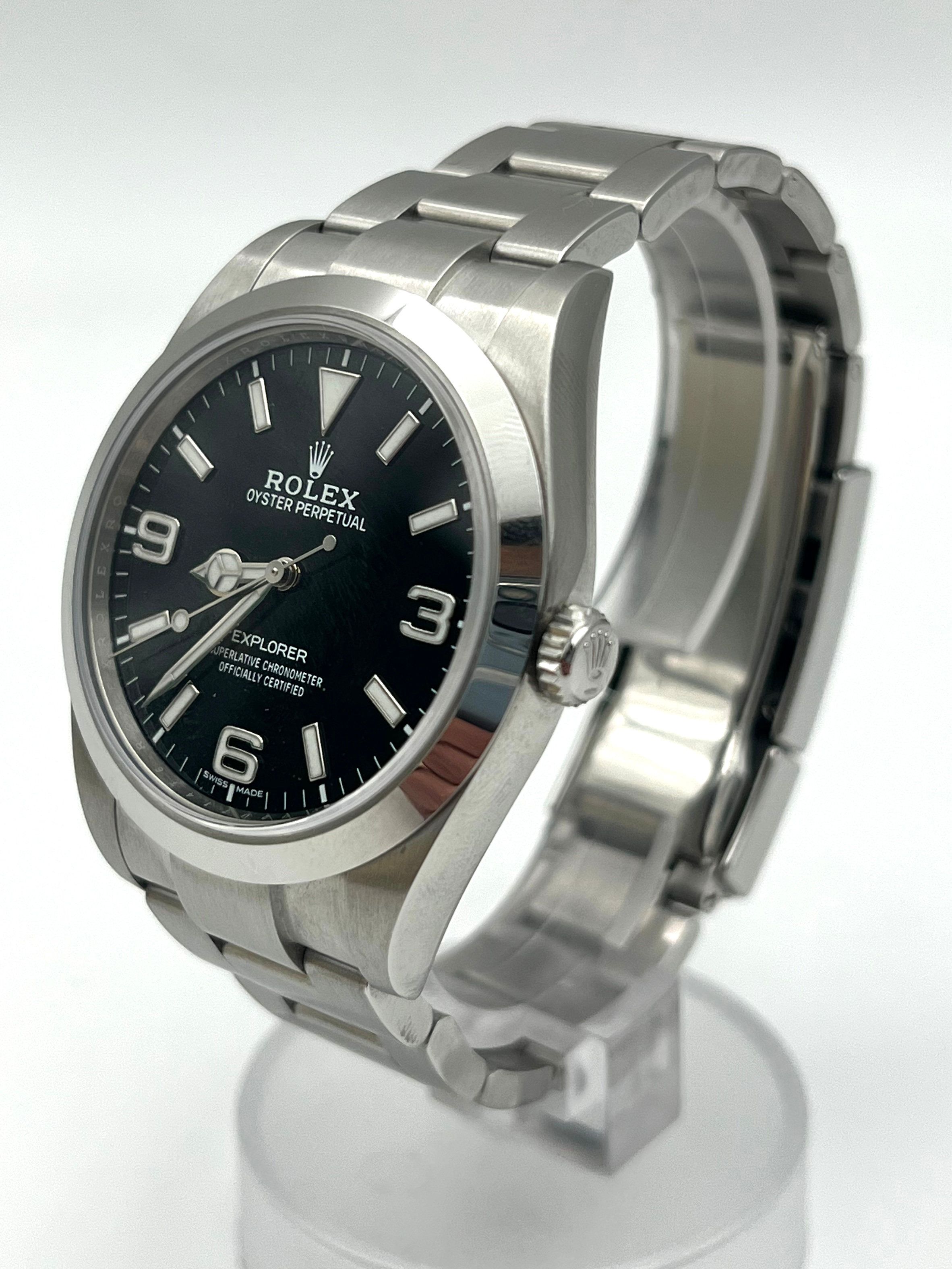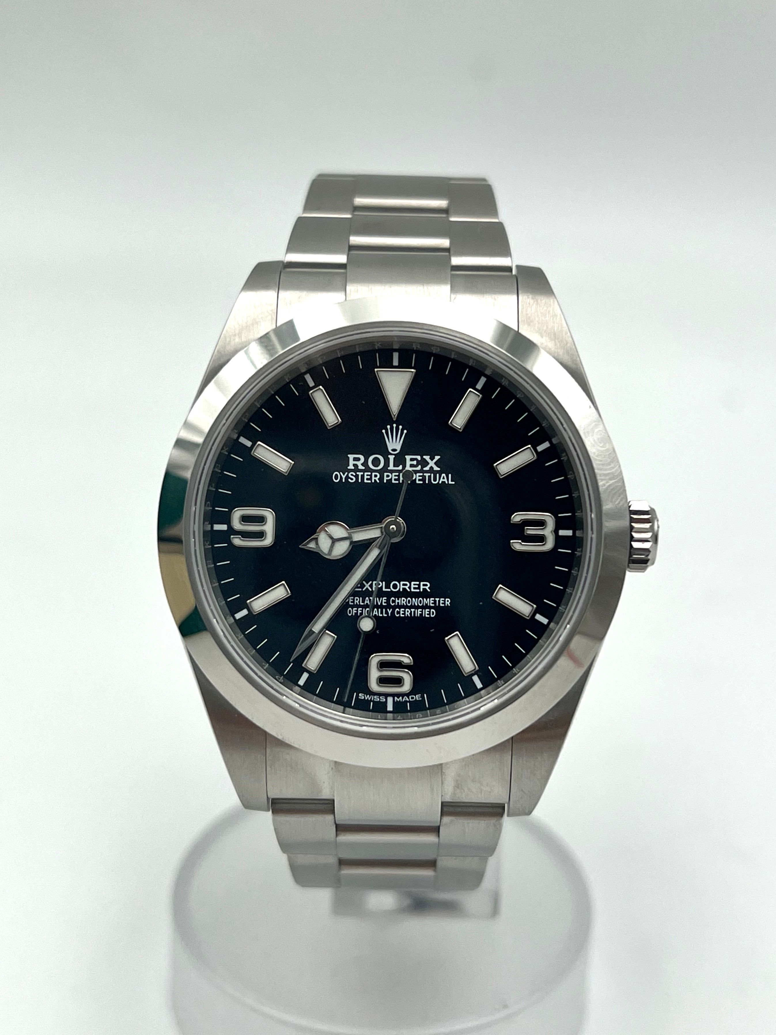 Rolex Explorer 114270 This action ready Rolex is the perfect minimalist sporty wristwatch. Comes with an original box and papers (Full set)WATCH DETAILSReference Number: 214270Year: 2020 CASE & DIALCase Size: 39mmCase Material: SteelDial Color: Black Hours Markers: signature "three, six, and nine" dial configurationWater Resistance: Yes Movement: AutomaticComplications: No STRAP/BRACELETStrap/Bracelet Material: SteelBracelet type: OysterBuckle Type: Folding Clasp