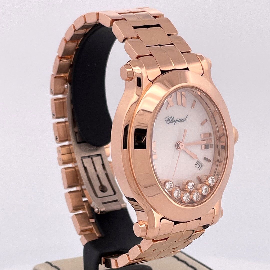 Chopard Happy Sport Chopard Happy Sport Oval 33MM 18K Rose Gold '7 Floating Diamonds' White Dial QRTZ B&P2019 Like New