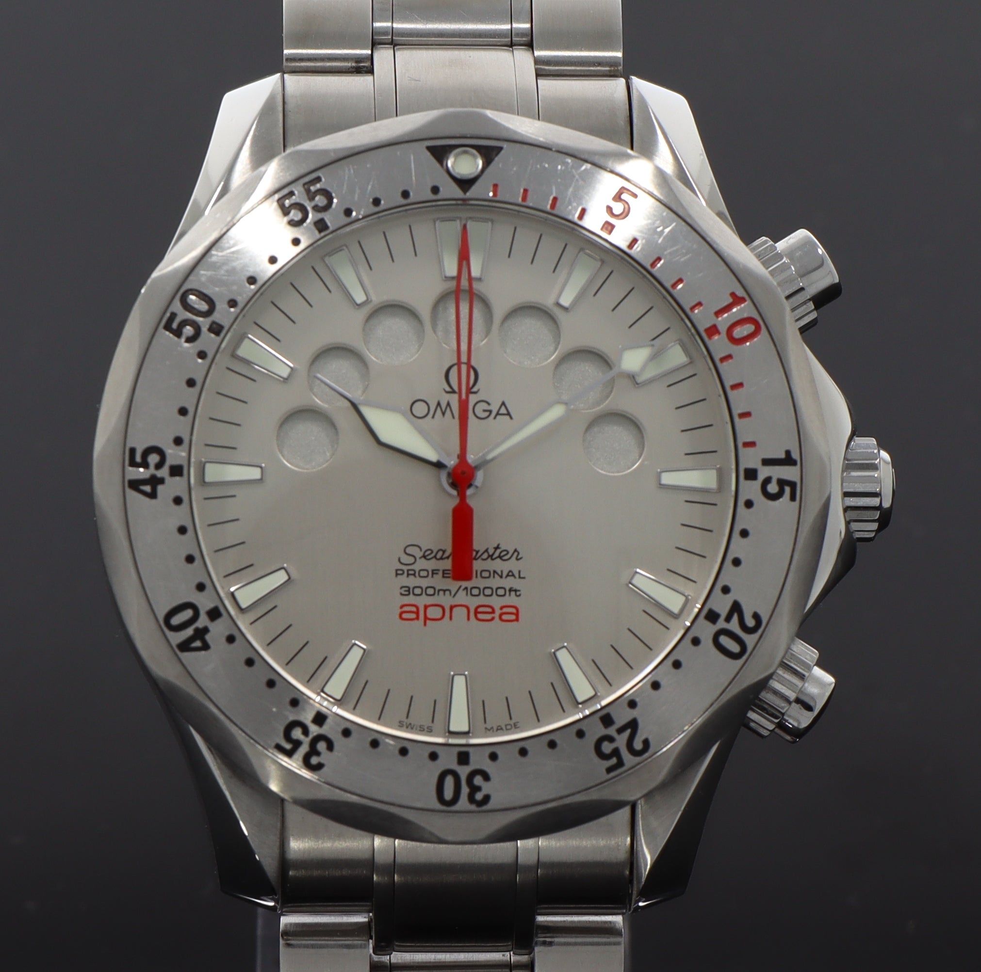 Hey Watchlover - ready for your new dream watch?!This time we have a beautiful Omega Seamaster Apnea Mayo White Dial in stock for you. We are experts in luxury watches... just a little different than the others... with a lot more lightness. Because lightness is what makes life a pleasure... and of course the right luxury watch on your wrist! :)