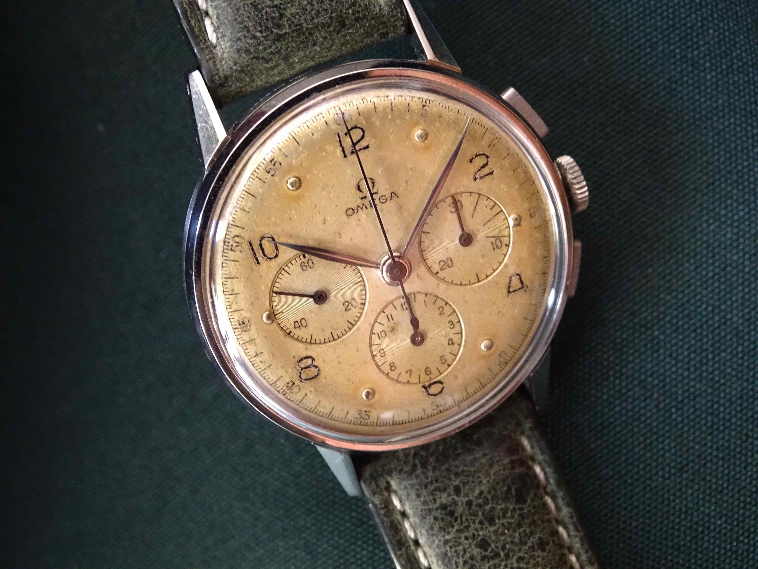 Old but strong this elderly and special steel omega chronograph from just after the war, beautiful original condition with beautiful patina dial, also ready for years of vintage wearing pleasure.