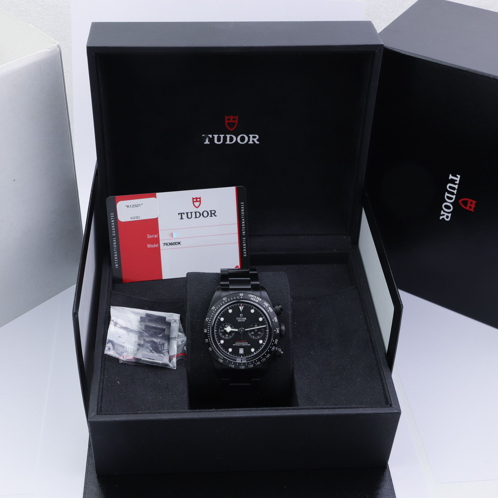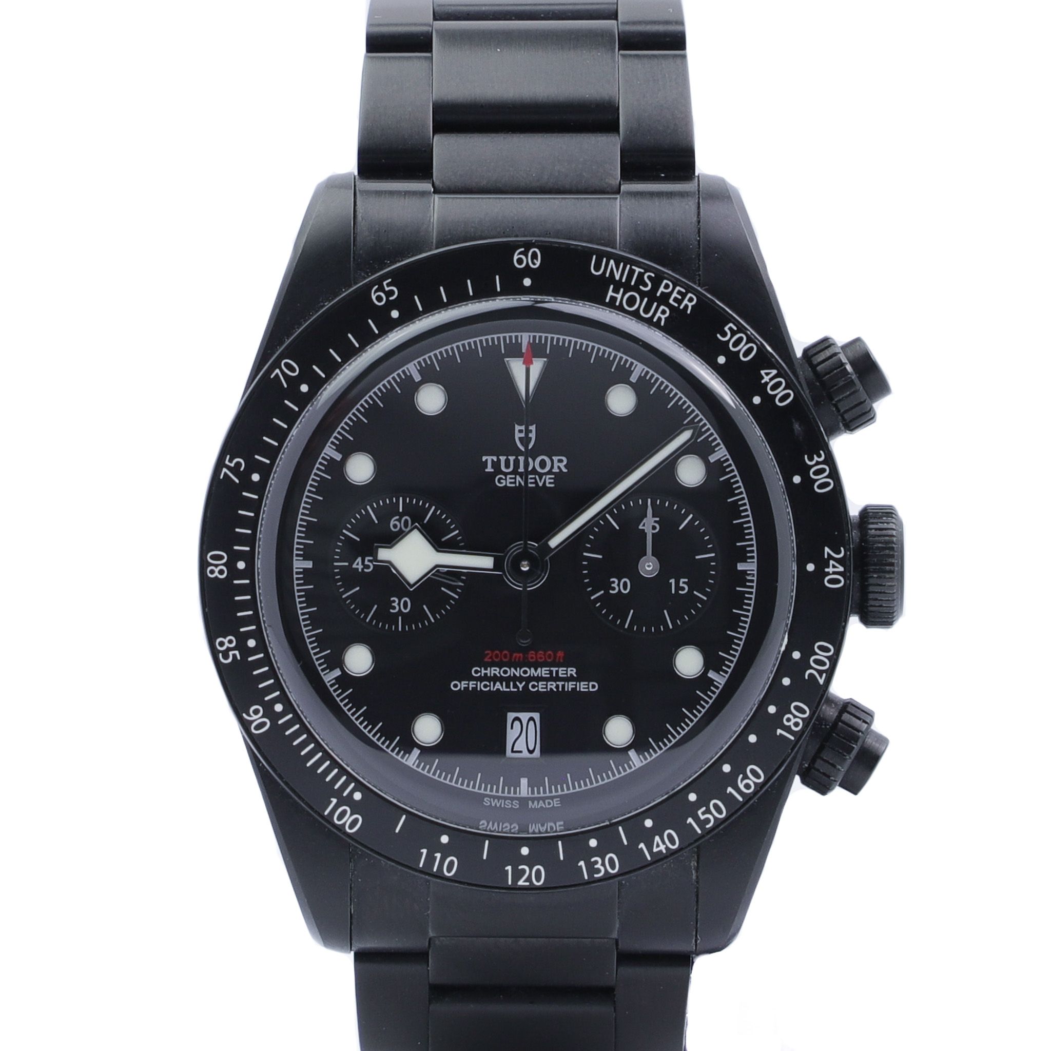 Presenting the unique and highly collectible Tudor Black Bay Chrono Dark reference 79360DK. This watch comes complete with box and papers dated 2019. The watch is in used condition and shows signs of wear. Please refer to the images.