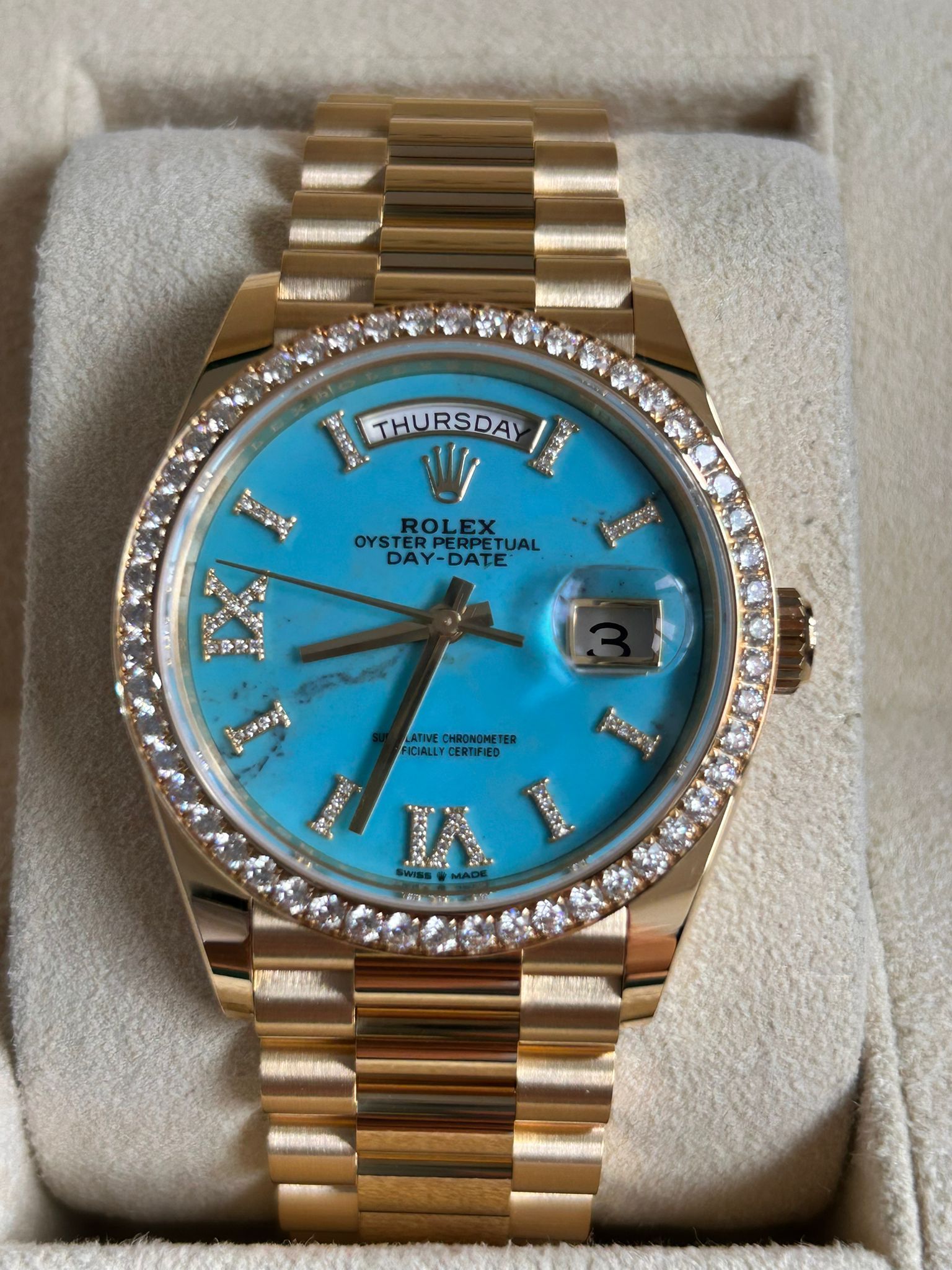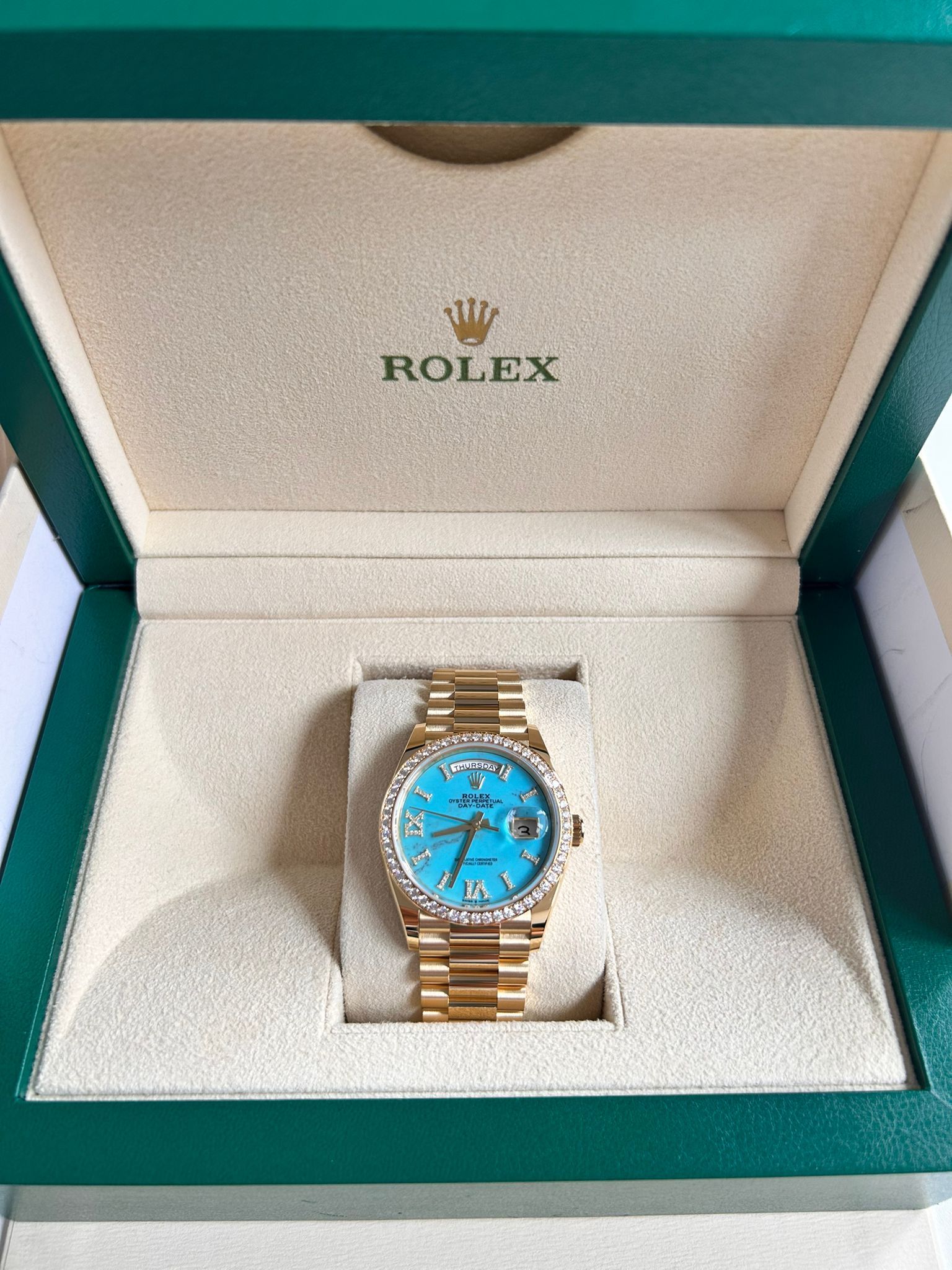 Rolex Day-Date 36 Rolex Day-Date 36 M128348RBR-0037 - Turquoise set with diamonds dial, diamond bezel, president bracelet