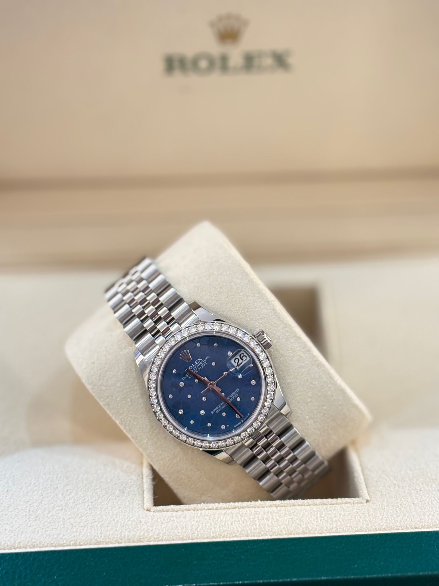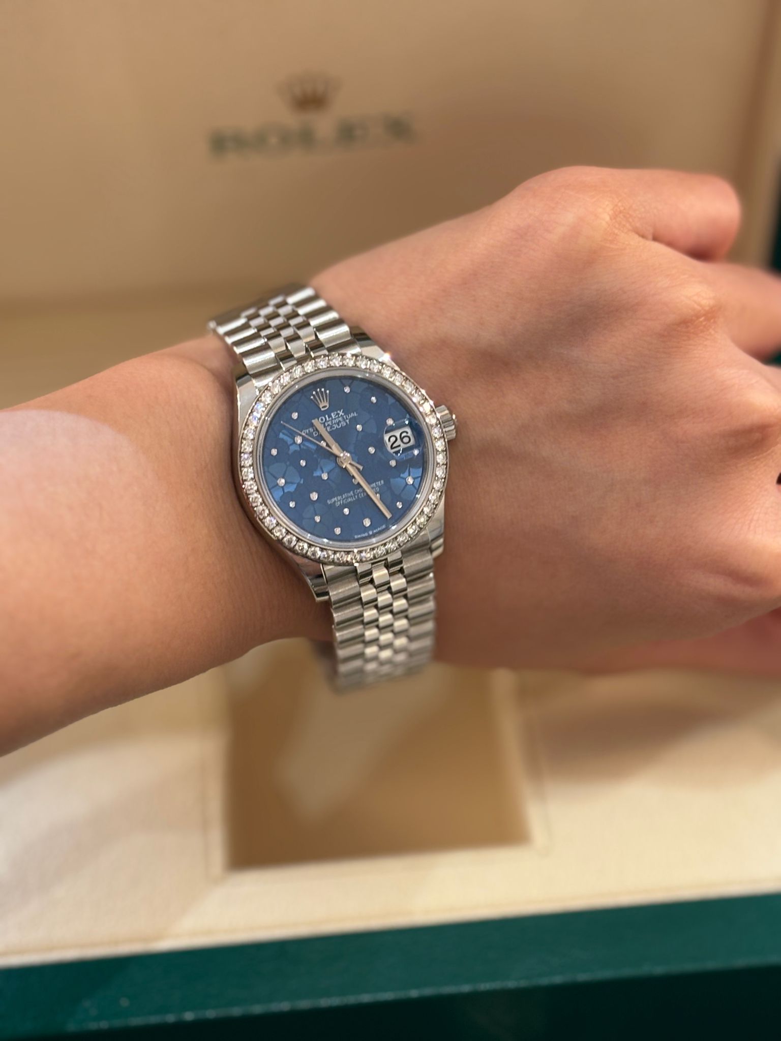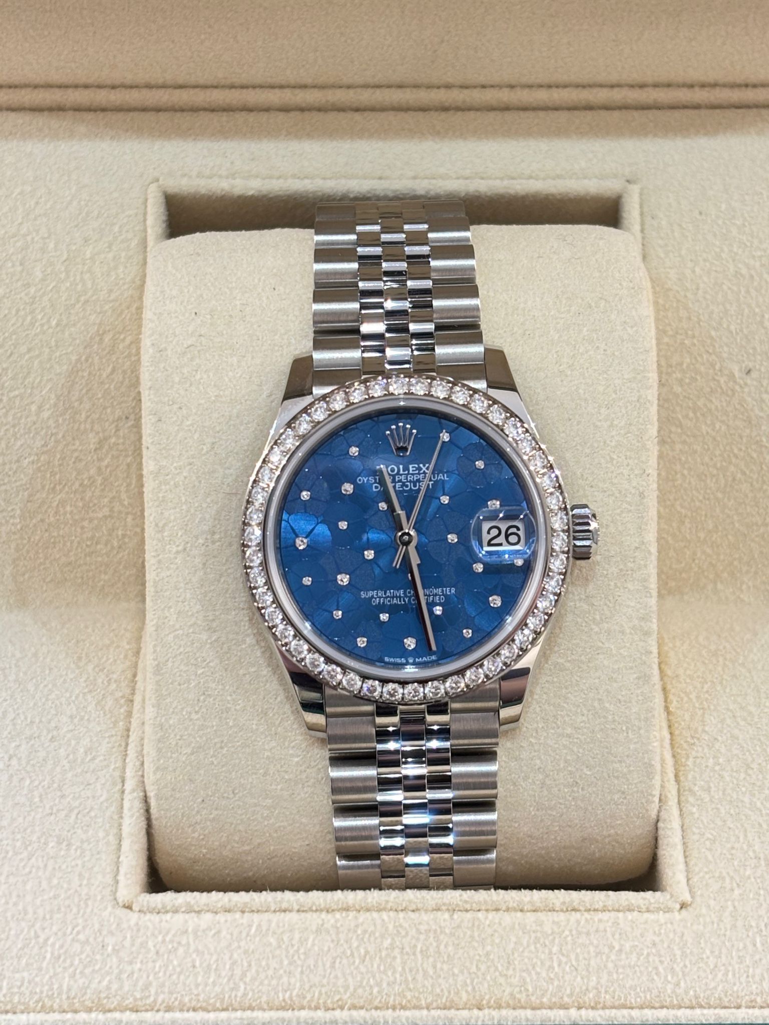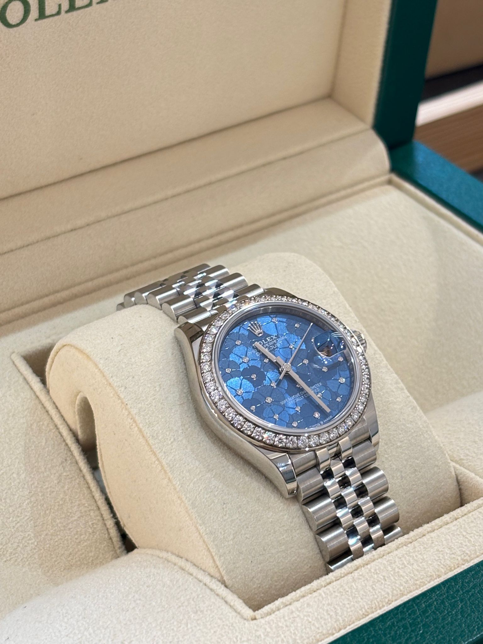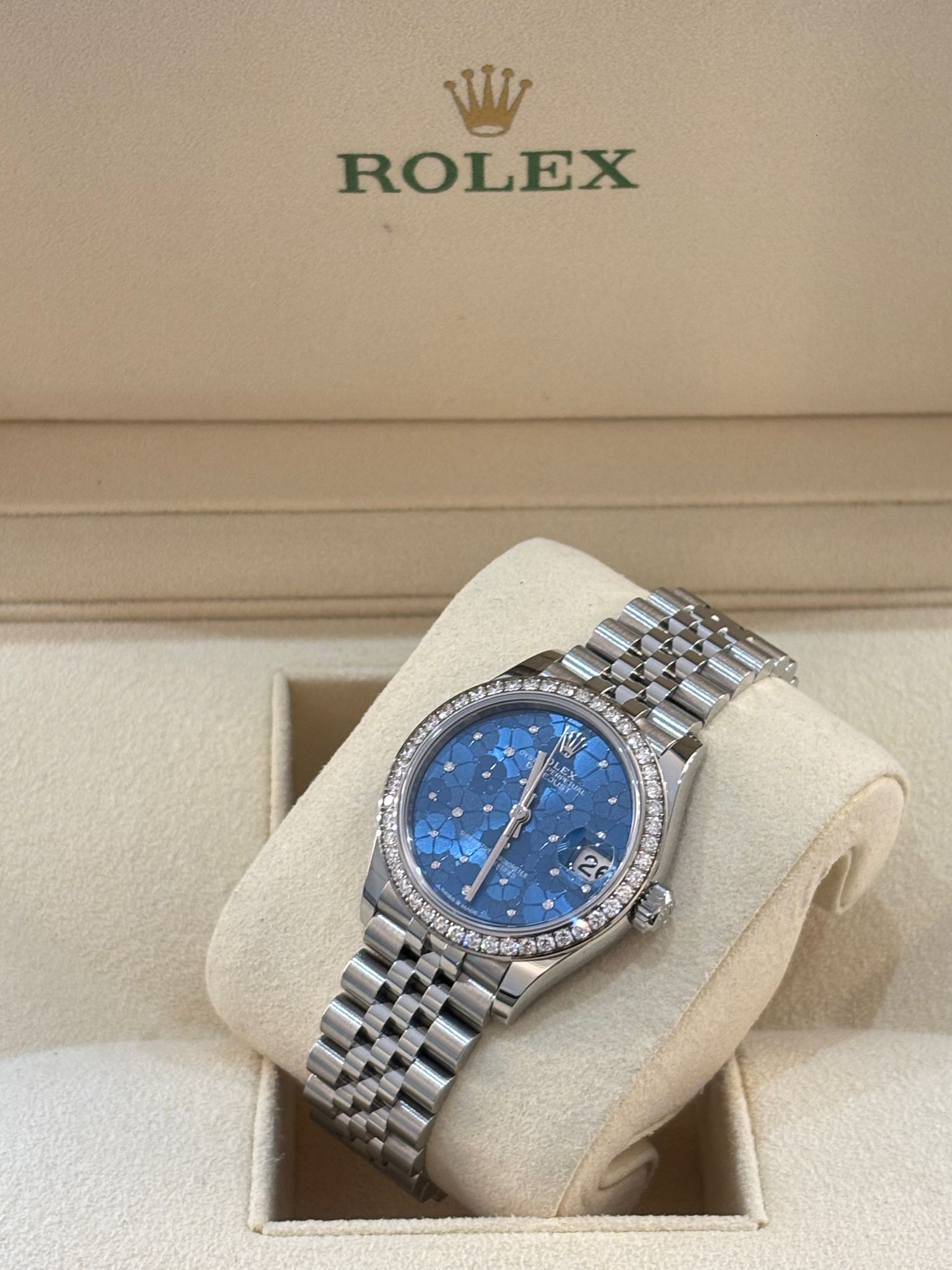 Rolex Datejust 31 Rolex Datejust 31 M278384RBR-0040 - Azzurro blue, floral motif set with diamonds dial, diamond bezel, jubilee bracelet