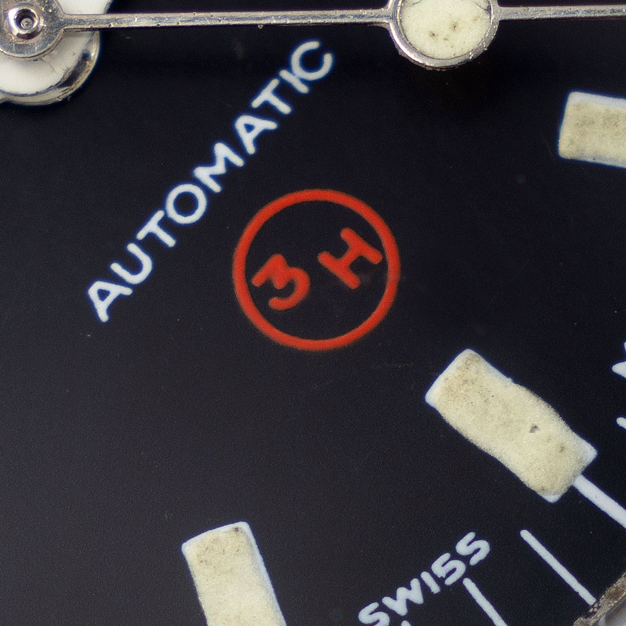 This is a very rare and interesting Blancpain Fifty-Fathoms that was made for the German Bundeswehr frogmen in the 1970s. These watches were never commercially available, only issued ! You will notice this watch doesn't look like your stereotypical Blancpain Fifty Fathoms, due to the bezel insert. The Bund divers were using re breathers so didn’t need the gradiated dive bezels we know from Rolex Subs and so the insert was plain , without numerals.. It is very unusual to find one of these watches in good and original condition, especially the bakelite bezel . This one cracked at the tritium triangle at 12 , so it actually is a proof of use as intended- the bakelite under the triangle is almost not existent so this is were they all crack normally !The 41mm case is very strong all-round and has fixed strap bars and a winding crown at five o’clock. The case back has the Bund engraving: 6645 -12-4162.The original hands contain tritium lume ( with some “military life on them “ ) that are good match with the hour plots, which are tritium as denoted by the 3H on the dial. We really love the funky orange minute hand ! Coming on the photographed Nato strap. The Automatic movement has been fully checked and regulated by our watch maker . Finding examples like this in this condition is not easy, this is a very special watch indeed, please get i touch to get this tool vibe wrapped around your wrist ! We love issued watches and this is a great find. Let’s talk and do a deal! Specifications:- Blancpain Fifty Fathoms - Issued to German forces (Bundeswehr ) in 1970s - Serial 12xx - Miltary case back engravings - Steel 41mm case - Black Dial with 3H marking - Original blank bakelite bezel insert - Original funky hands with orange minute hand - Comes on the pictured Bulang and Sons nato strap - Fully checked by our watchmaker - One-year mechanical warranty- Free worldwide Fedex Priority shipping
