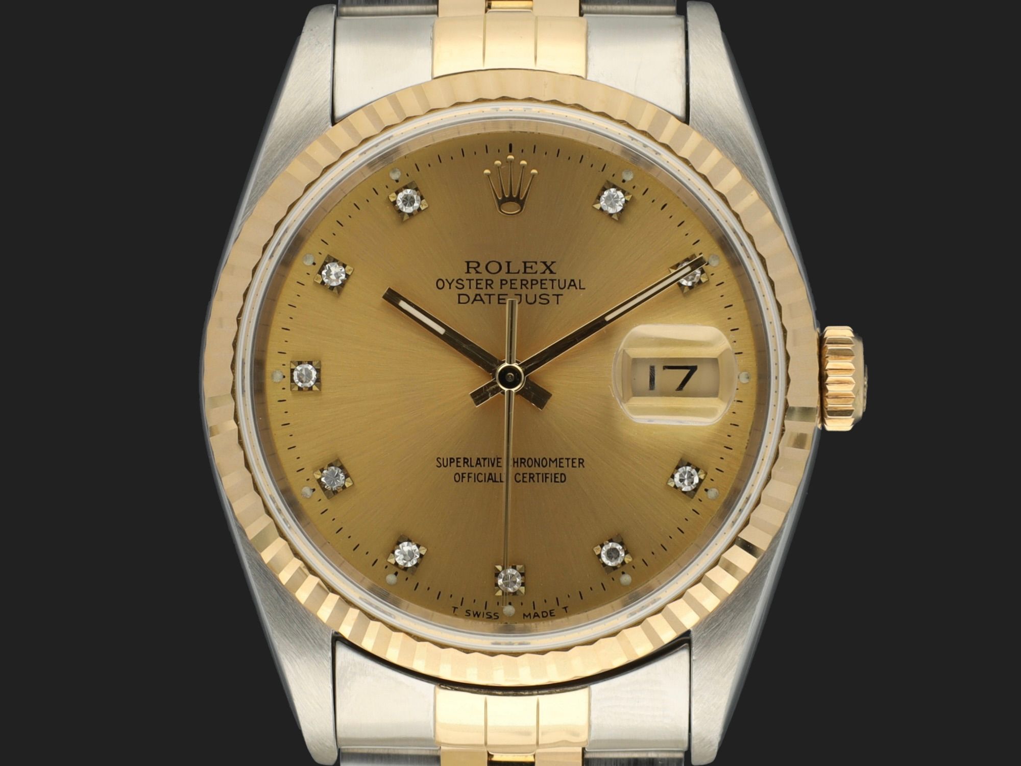 Datejust 36 Gold/Steel Champagne Diamond Dial 16233